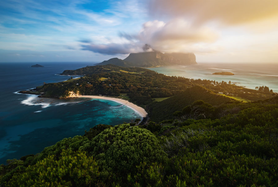 Capella Lodge is Lord Howe Island’s premium boutique accommodation, commanding spectacular ocean and mountain views from its secluded southern end above Lovers Bay. With sweeping vistas across the Pacific Ocean and the world’s southern-most coral reef, the lodge sits at the foot of the island’s dramatic twin peaks, Mounts Gower and Lidgbird.