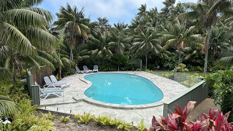 Ocean View is a unique blend of the old & the new, featuring a large refurbished lounge & recreation area. In the games room you can play pool, table tennis, or select a board game. There is a small library & plenty of room to just sit & relax. There is a supergrass tennis court (for guests only), tennis balls & racquets provided, and a large swimming pool with lounge chairs to sit & soak up the sun.